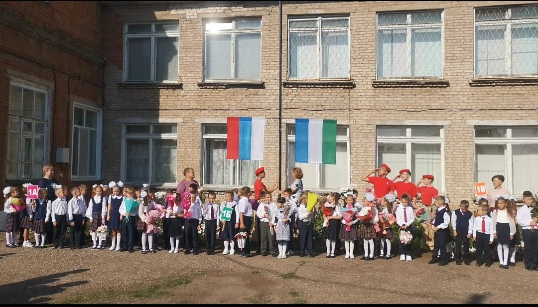 Нарядные ученики и ученицы с пестрыми букетами цветов, учителя и родители заполнили школьный двор. Звучит музыка, и все классы строятся на школьном дворе. Все застыли на торжественной линейке под звуки гимна России и Республики Башкортостан. Знание каждого из нас – это будущее каждого из нас, это будущее страны. Торжественная линейка объявляется открытой. По традиции первыми представляют малышей-первоклассников, их в этом году 63 . Директор школы и гости поздравили учащихся школы с новым учебным годом, отметив, что учение - нелегкий, но радостный и увлекательный труд. Пусть новый учебный год станет для всех ярким и плодотворным, пусть будет наполнен творчеством, интересным и полезным общением, духовно, интеллектуально обогатит и ребят, и их педагогов. С ответным словом выступила группа малышей - первоклассников, которые с выражением прочли выученные стихи. Эстафету подхватили старшеклассники. Наступило время первого школьного звонка в этом учебном году. Это почетное право было предоставлено обучающемуся 11Б класса Закиеву Артуру и первокласснице Гизитдиновой Валерии.