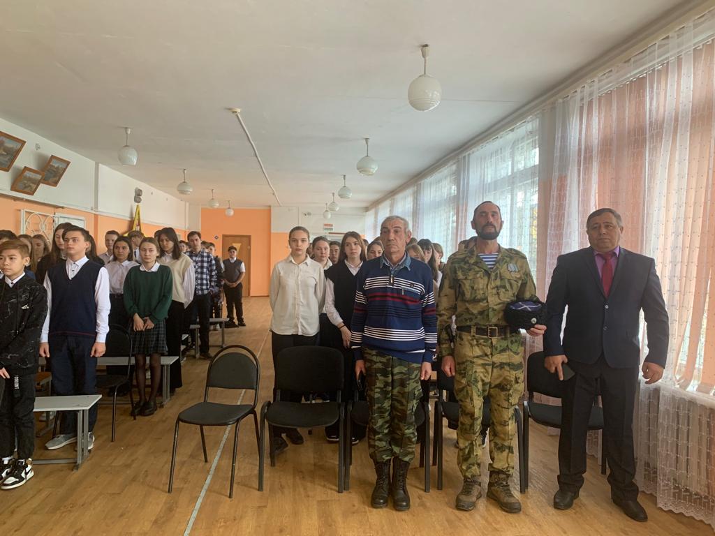 8 ноября 2022 года в МБОУ СОШ №4 с. Раевский прошел Урок мужества «Отчизны верные сыны…», посвященный памяти сотрудников органов внутренних дел России, погибших при исполнении служебных обязанностей. Целью мероприятия стало формирование у ребят высокого патриотического сознания, верности к Отечеству, воспитания у подростков уважительного отношения к ратным подвигам защитников Отечества. Почетными гостями стали руководитель местного отделения «Боевое братство» Тухватуллин Булат Флюрович, участник специальной военной операции Гильманов Сабит.