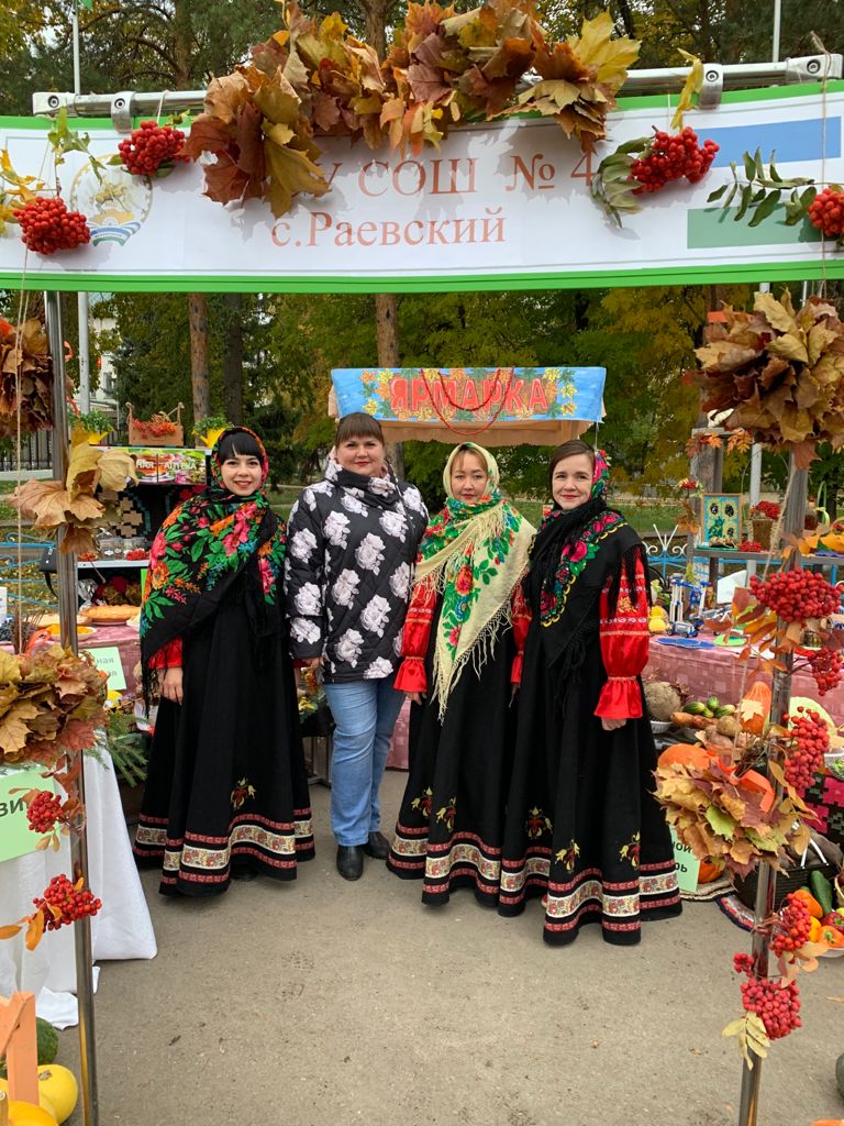 1 октября 2021 года состоялась сельскохозяйственная ярмарка - выставка на центральной площади с. Раевский, в которой принял участие коллектив МБОУ СОШ №4 с. Раевский. Были представлены поделки и композиции из овощей и фруктов, шишек, листьев, цветов и других видов природного материала.