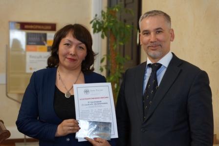 24 апреля 2018г. в Национальном Банке Республики Башкортостан состоялась встреча председателя Банка Кашапова М.Д. с педагогами и обучающимися – победителями и призерами XIII Всероссийской олимпиады по финансовой грамотности, финансовому рынку и защите прав потребителей рынка финансовых услуг для старшеклассников. Среди них ученик 10 класса МБОУ СОШ №4 с.Раевский, призер олимпиады и Гумерова Гульнара Дамировна, учитель математики и экономики МБОУ СОШ №4 с.Раевский.