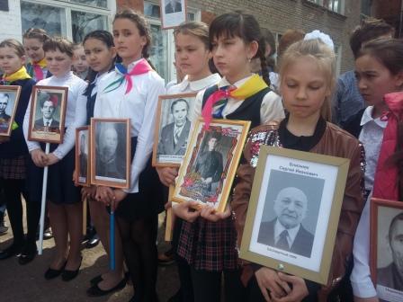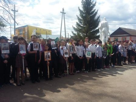 участие в митинге, в акции "Бессмертный полк". Юноши и пионеры несли