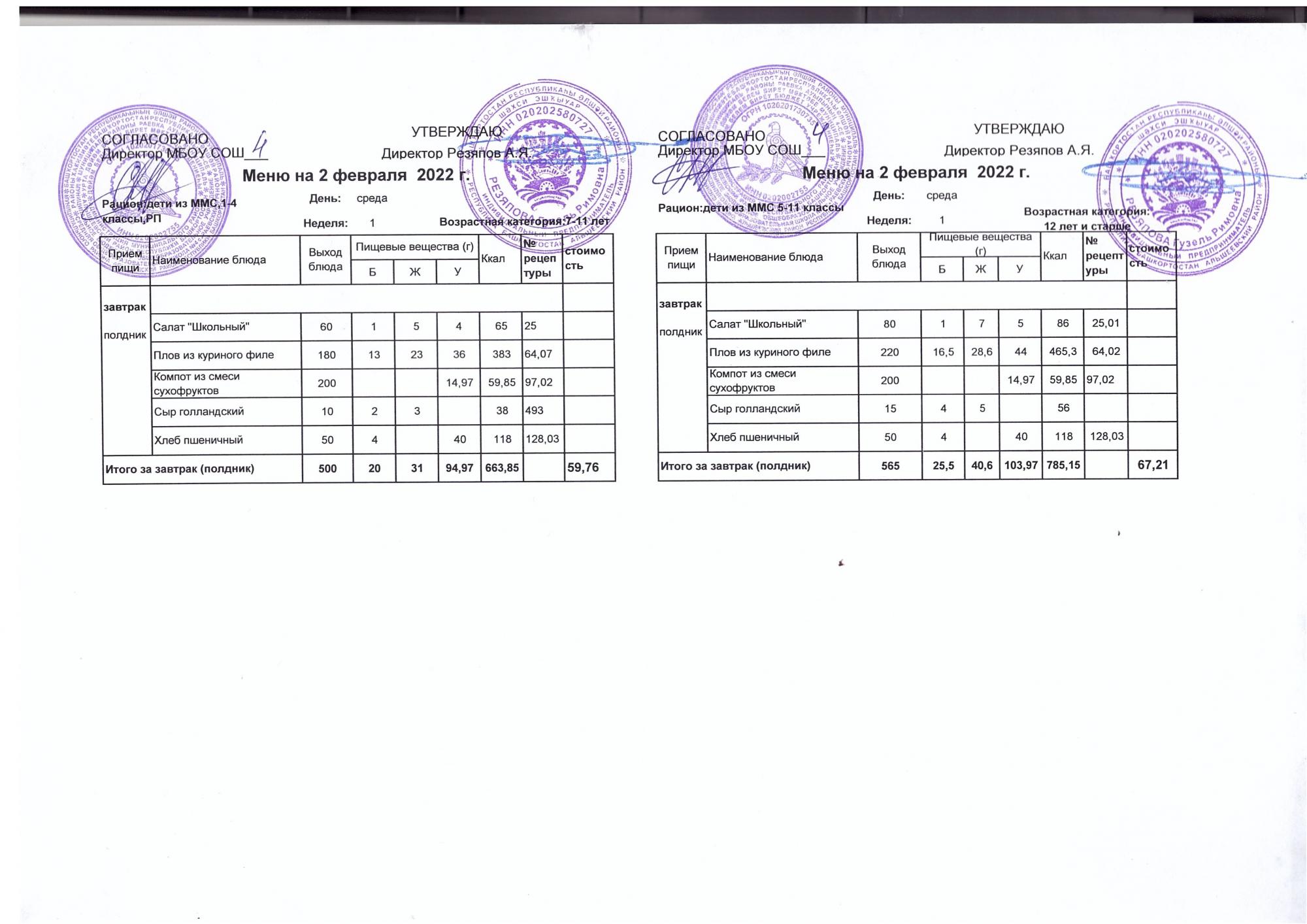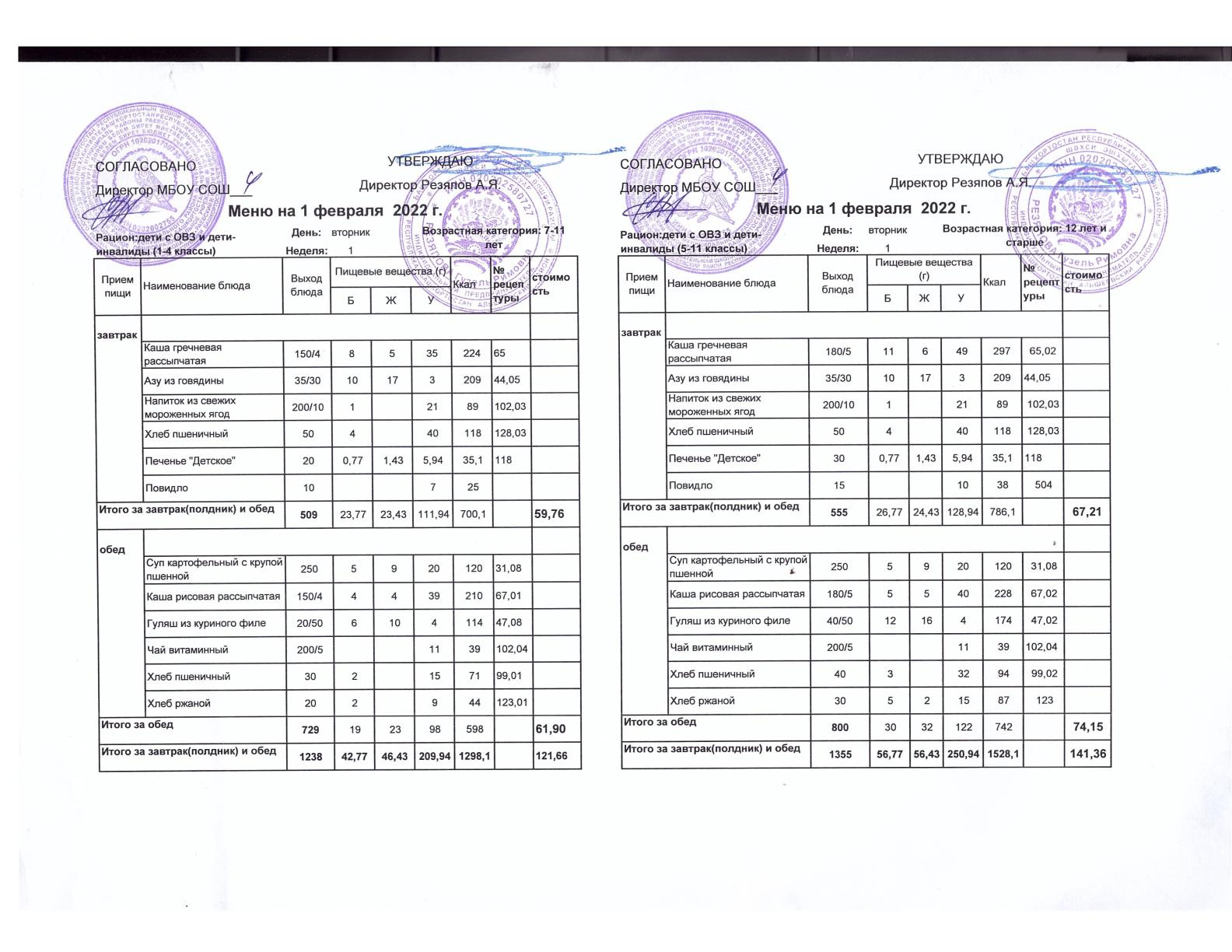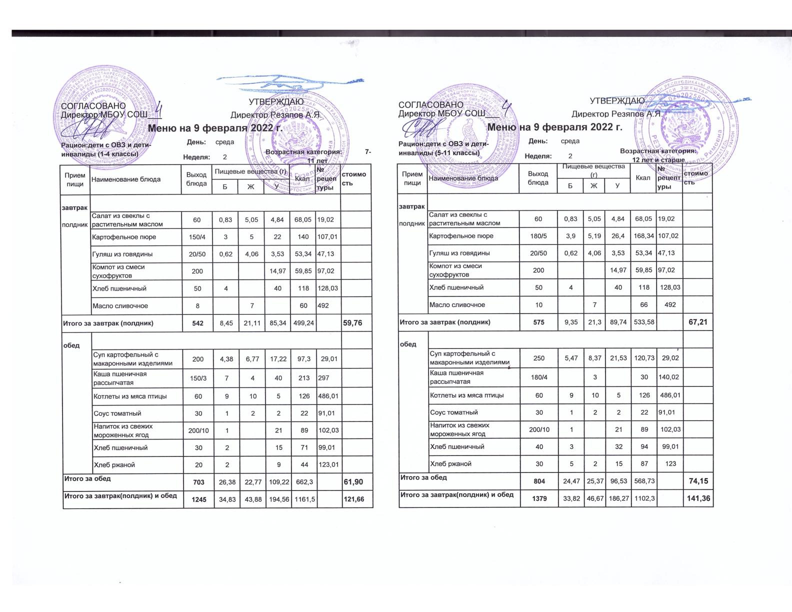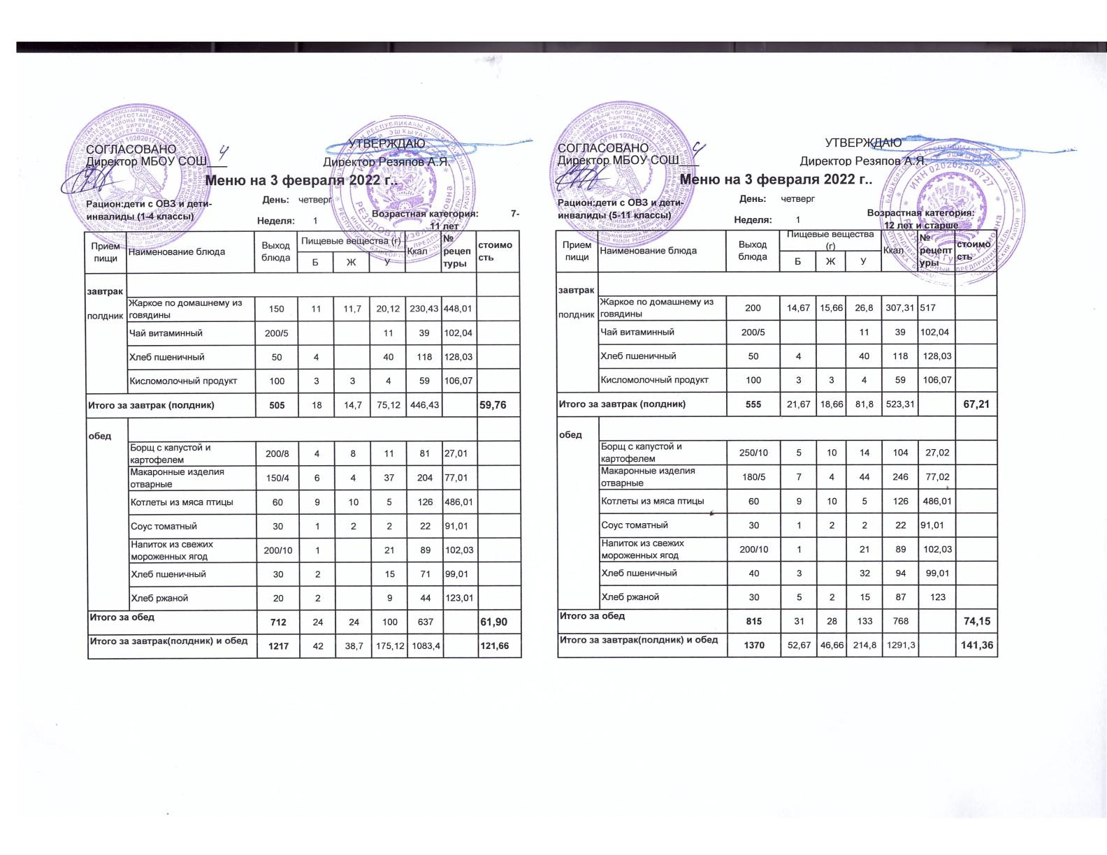 Стоимость школьного питания