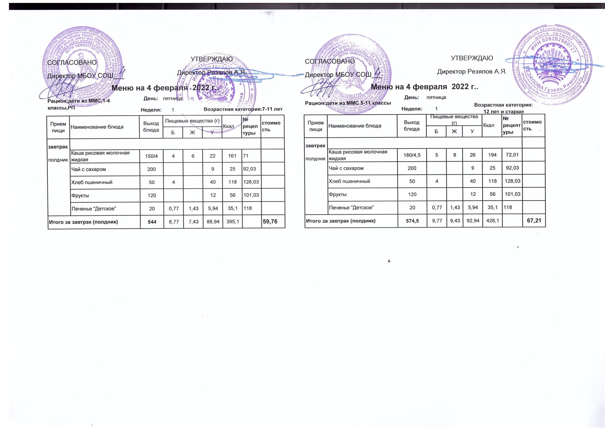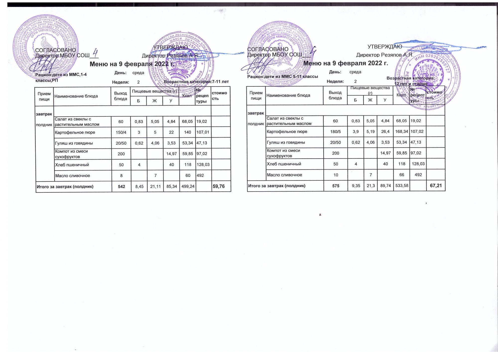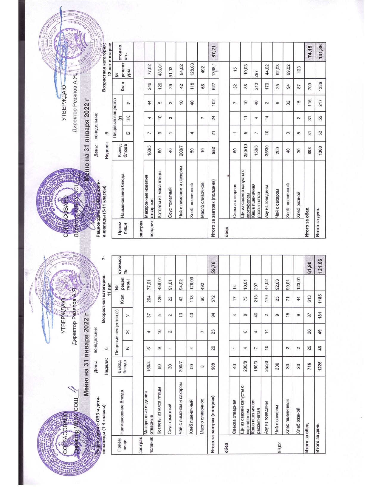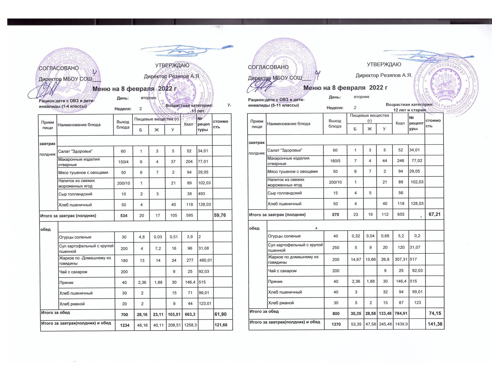 Стоимость школьного питания