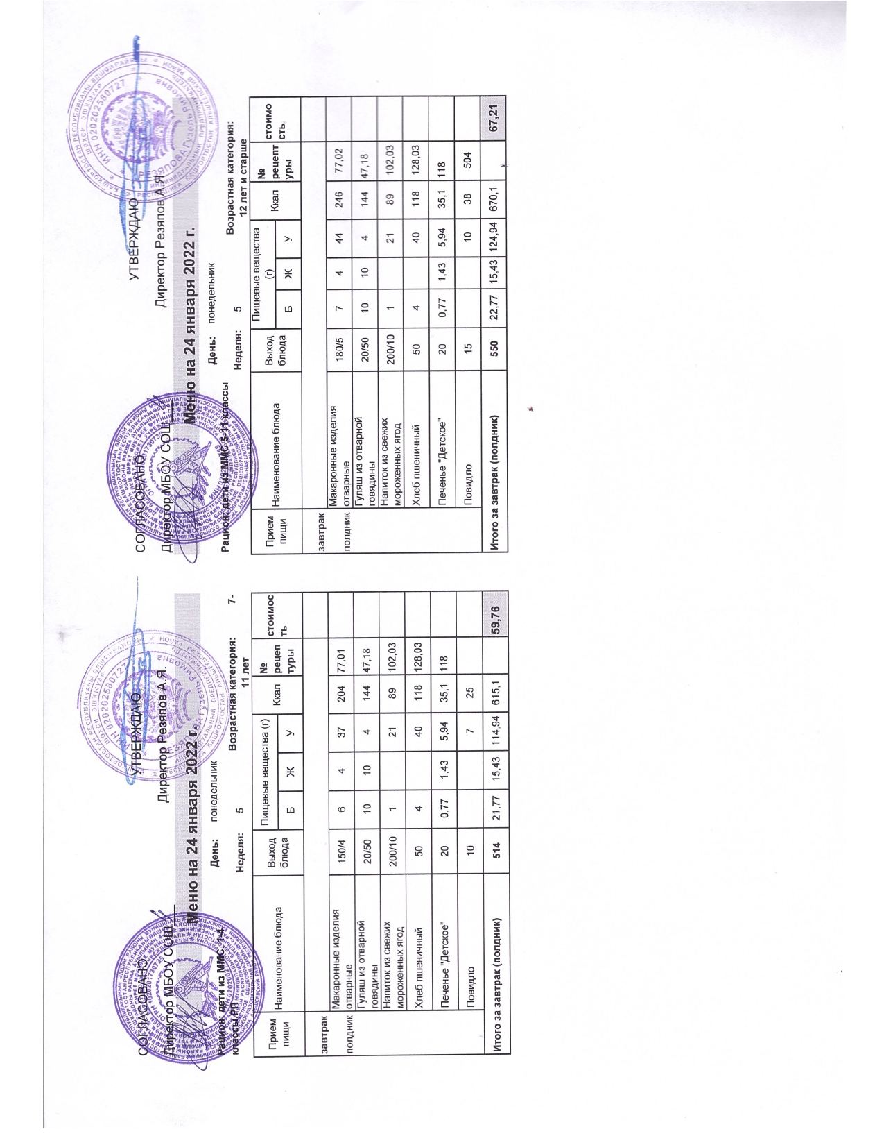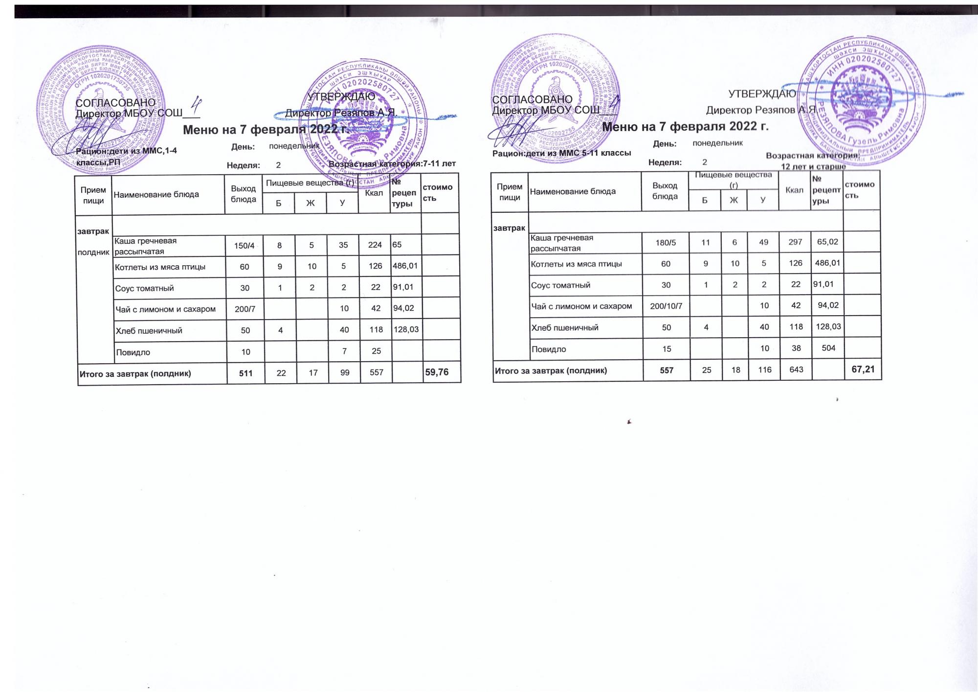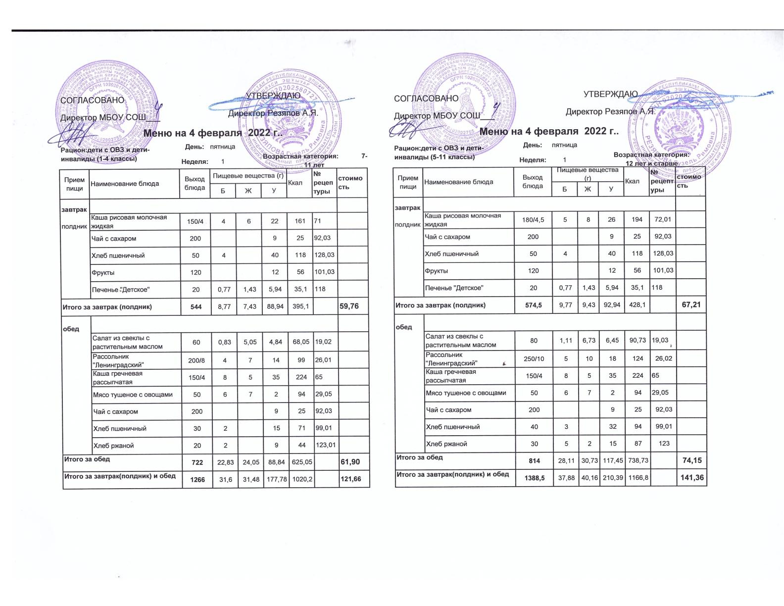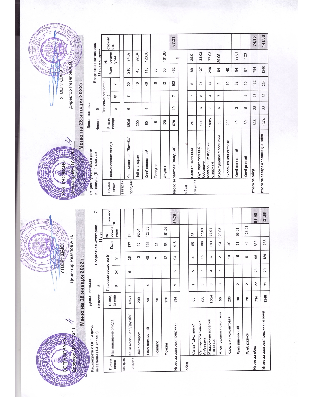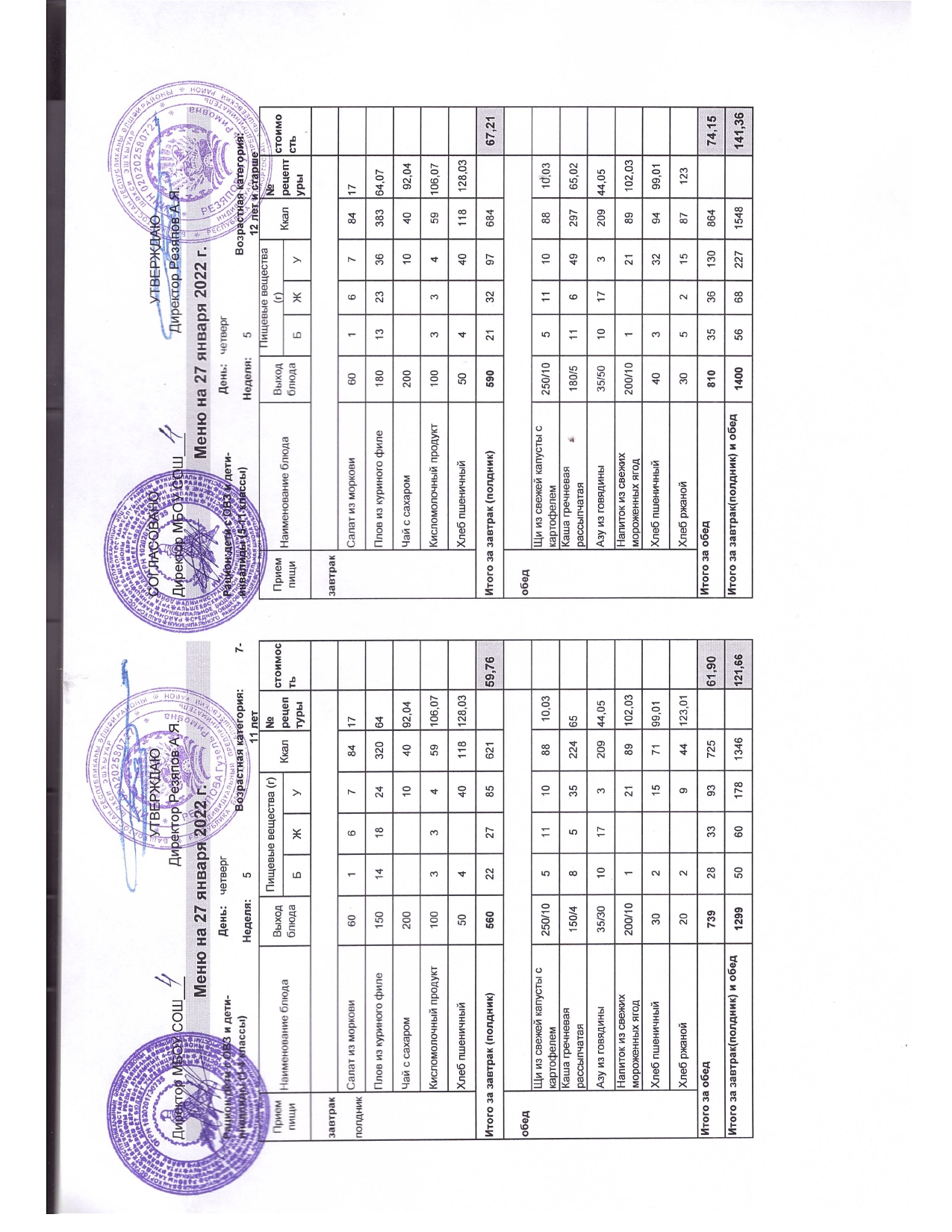 Стоимость школьного питания