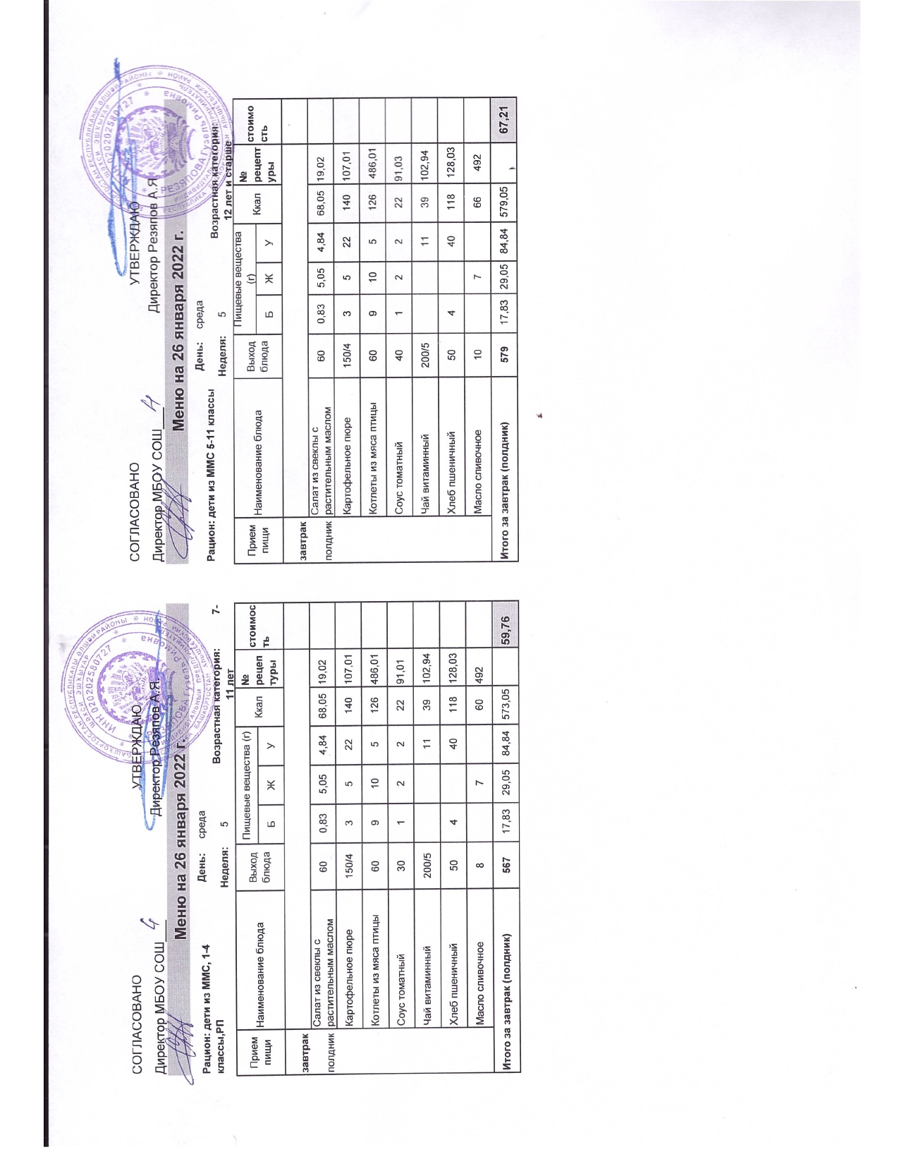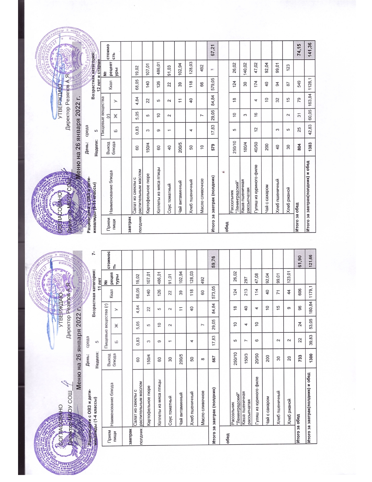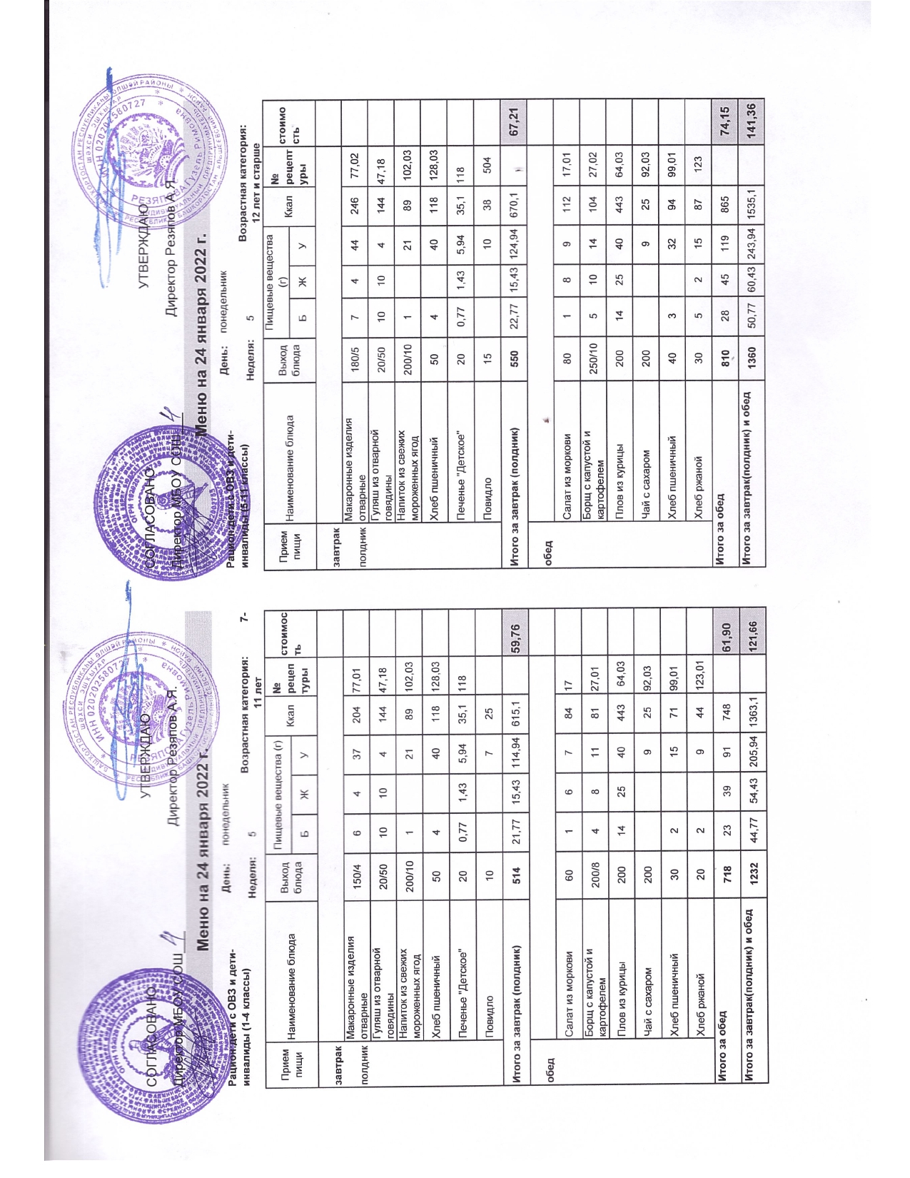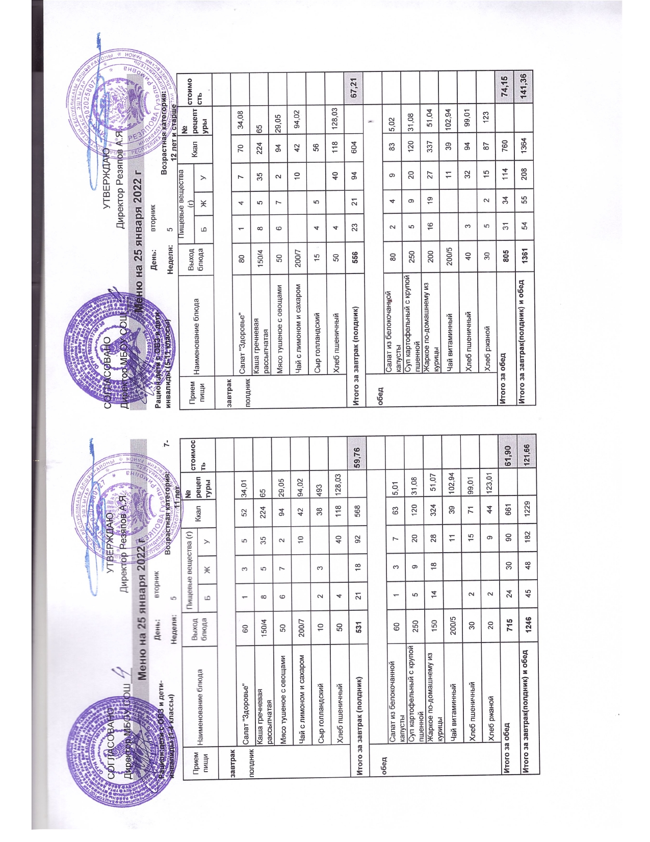 Стоимость школьного питания