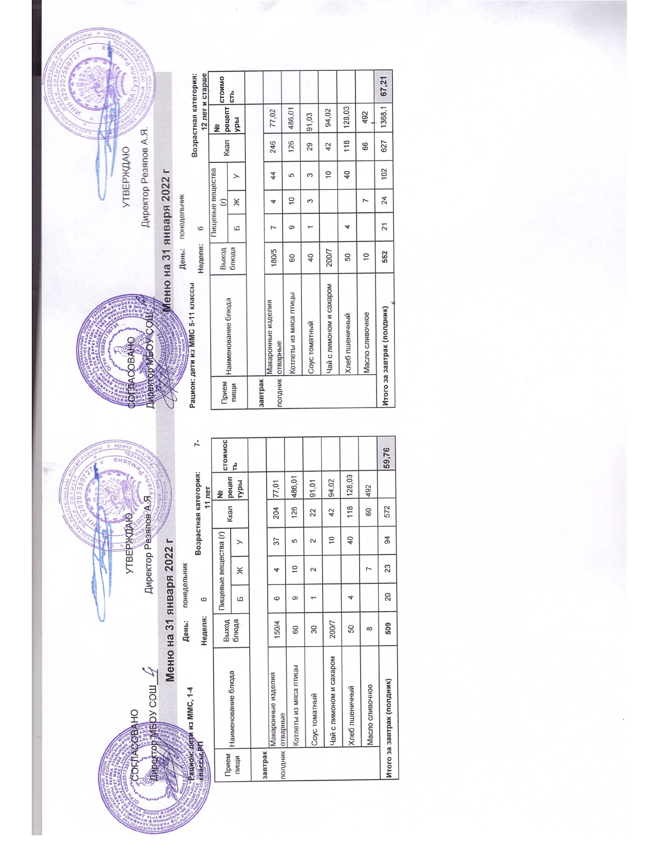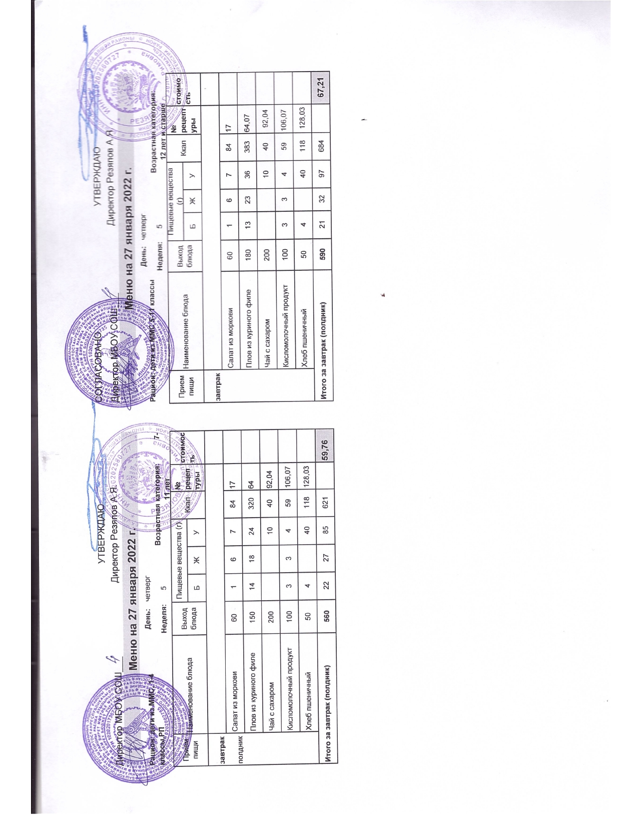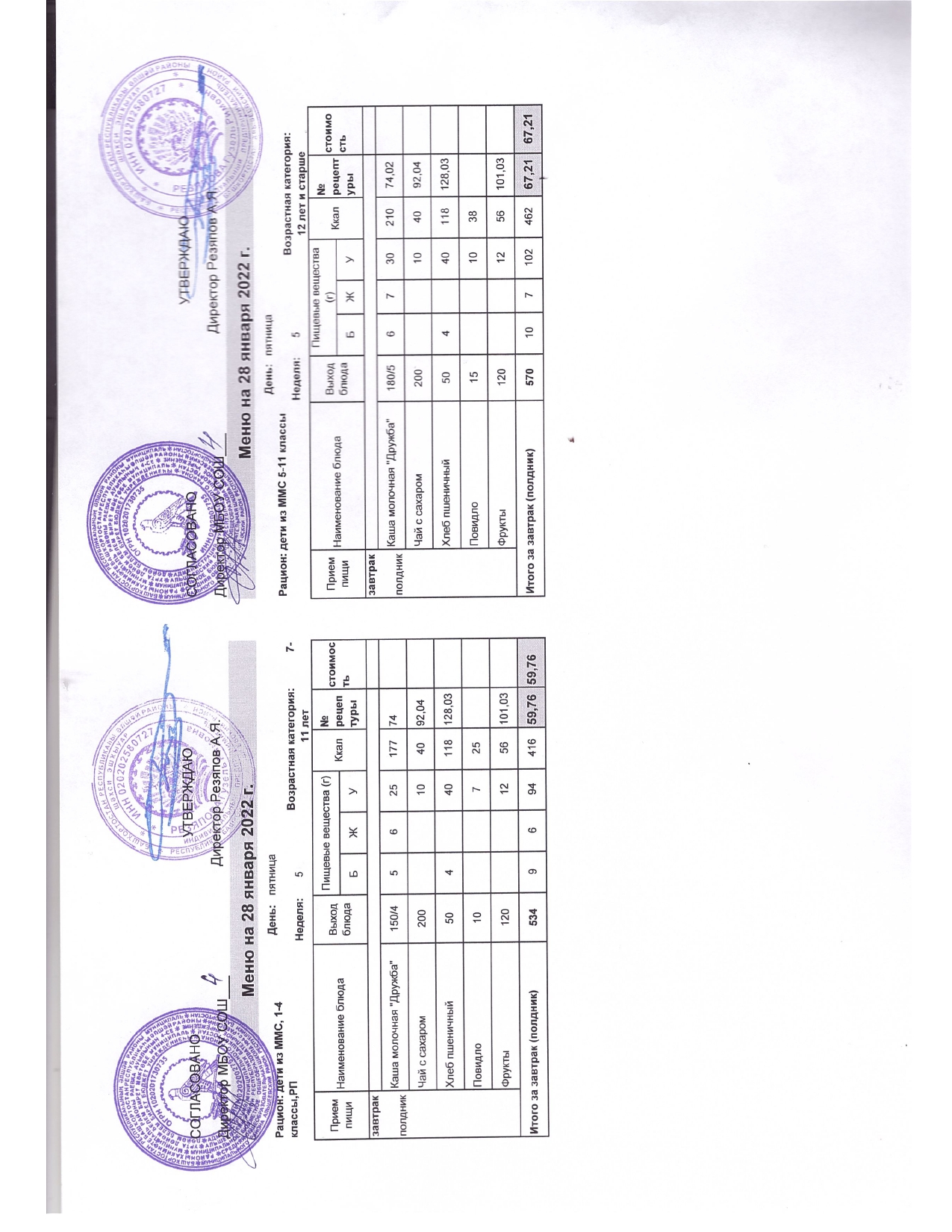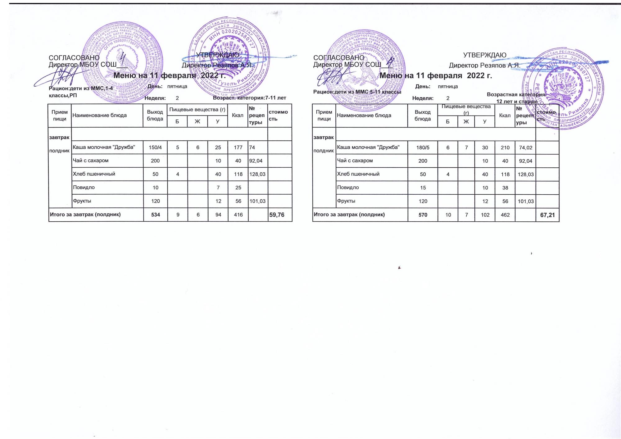 Стоимость школьного питания