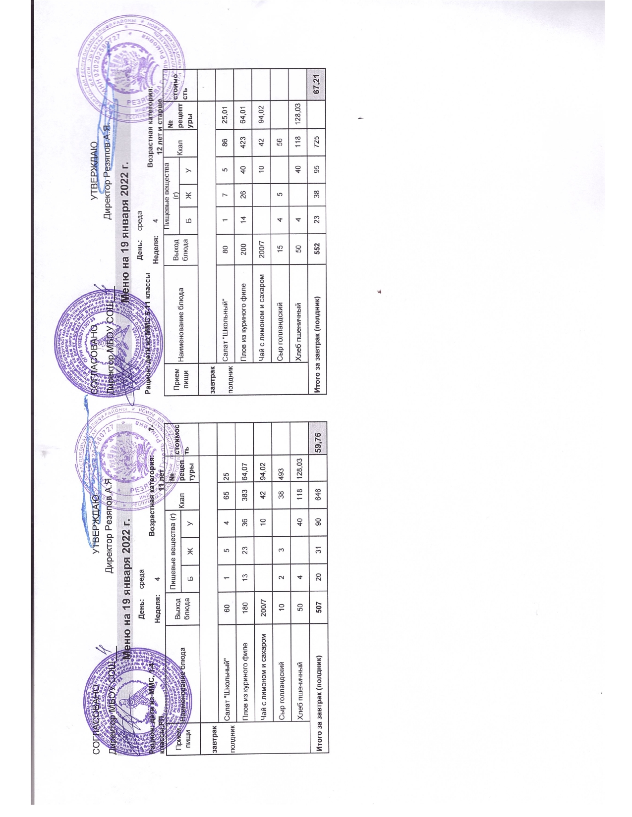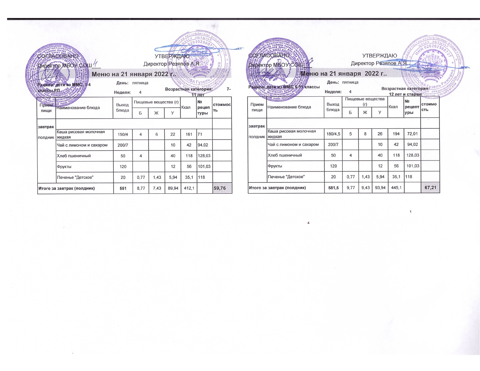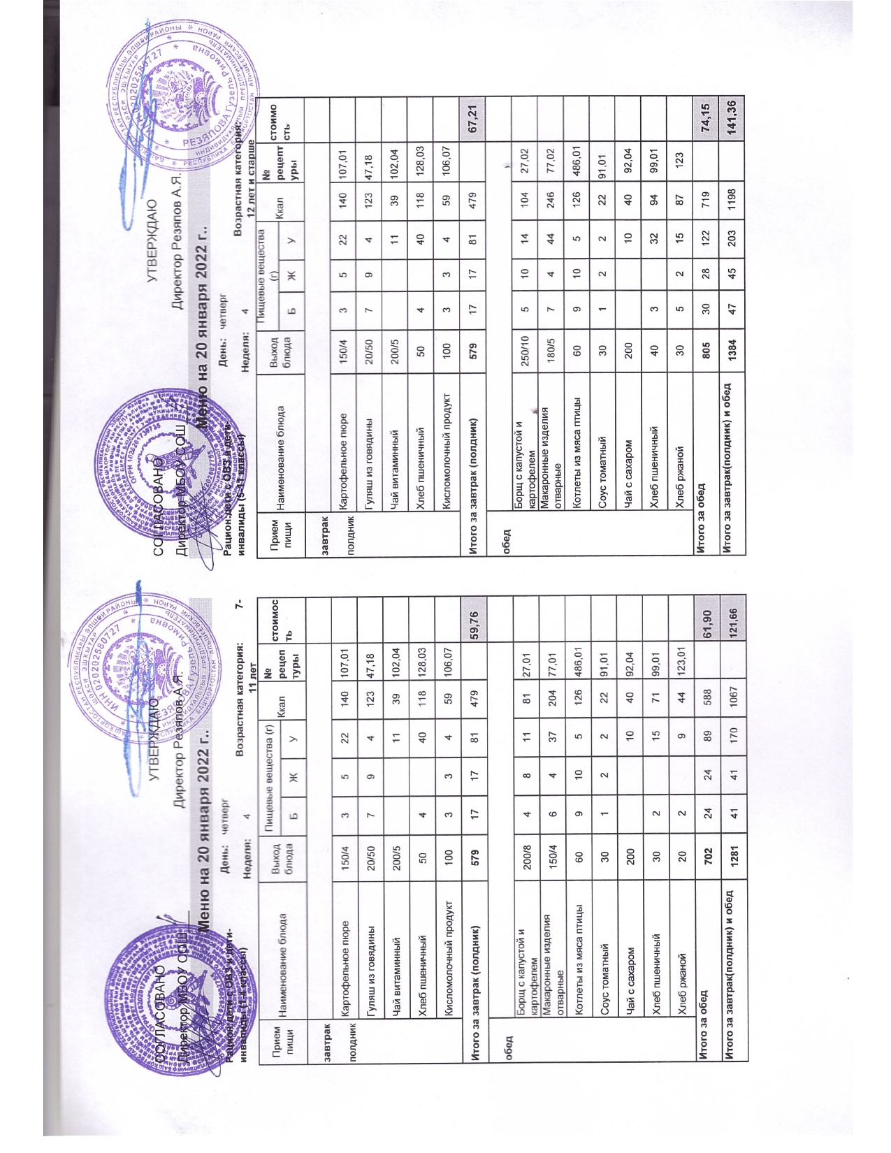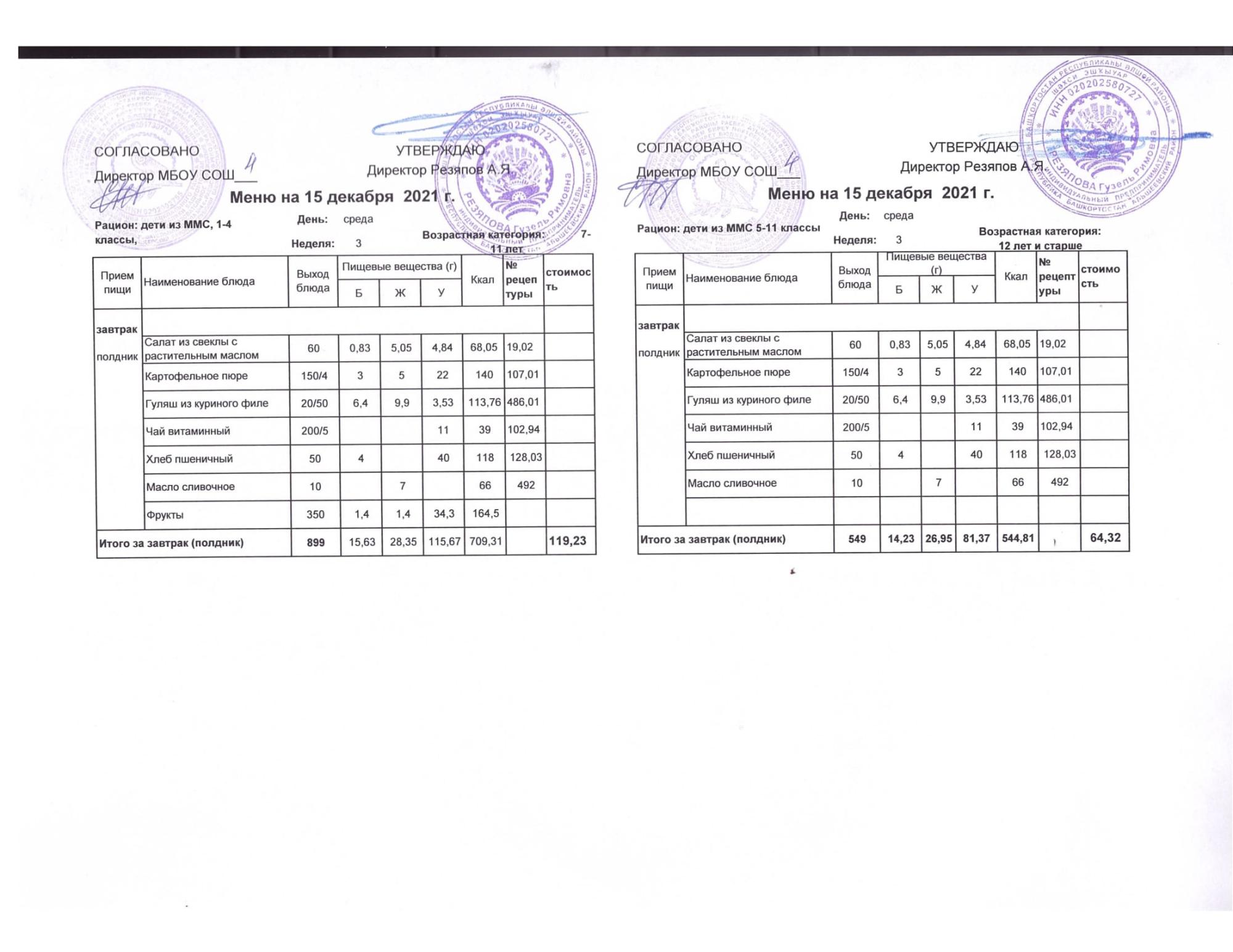 Стоимость школьного питания