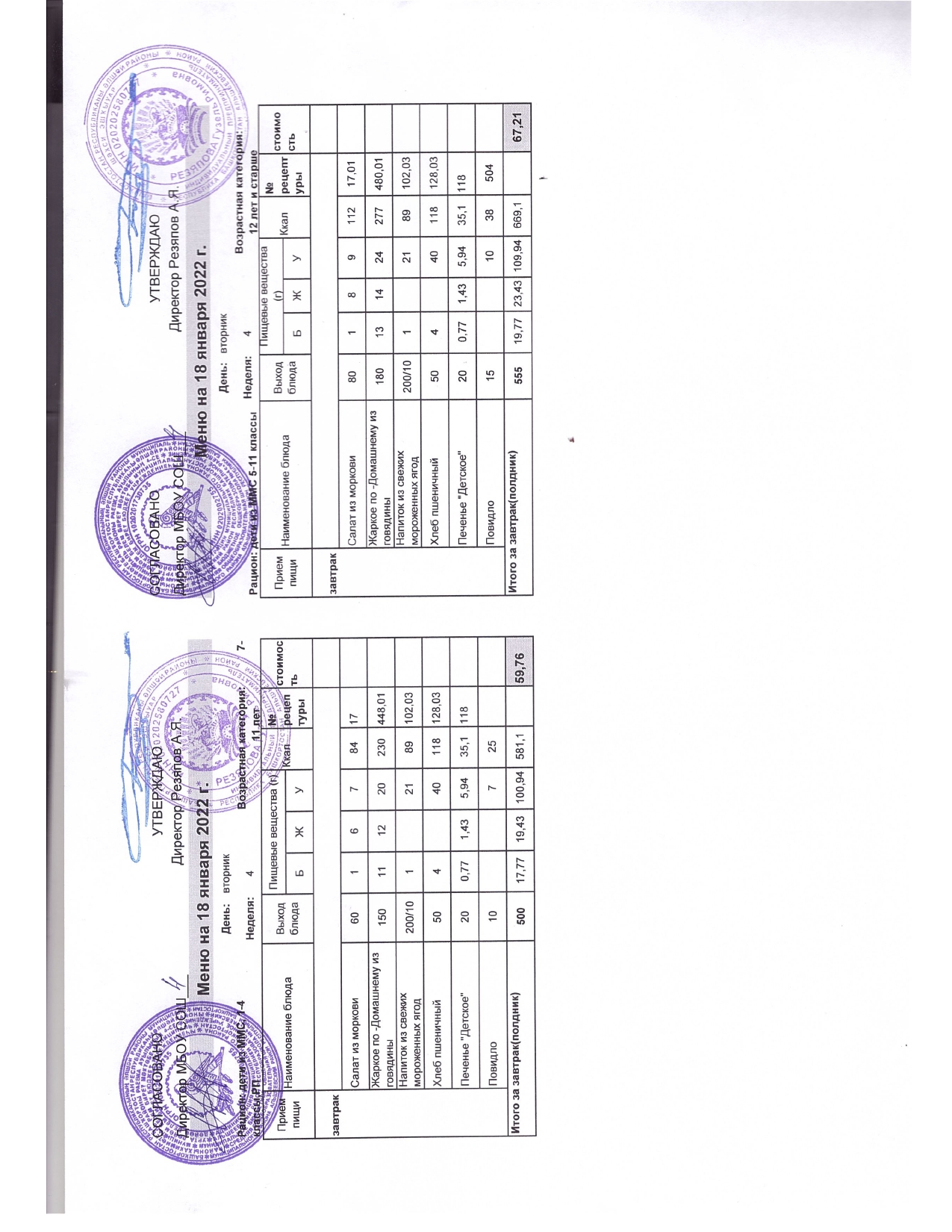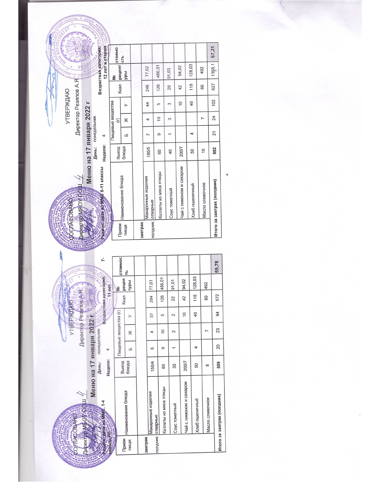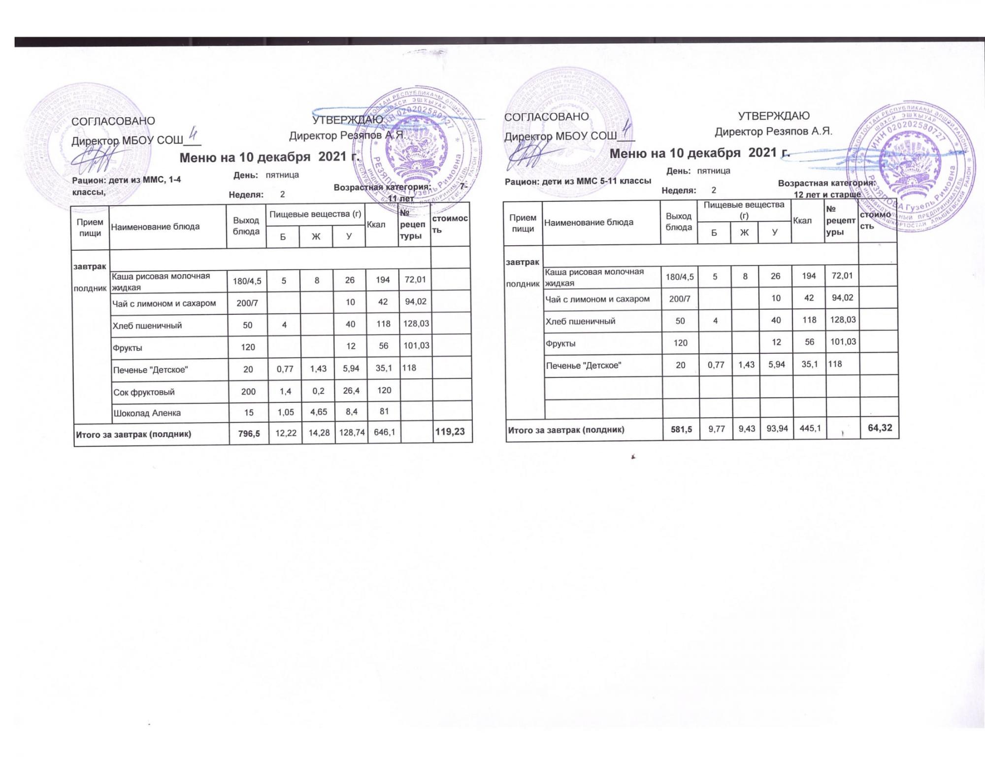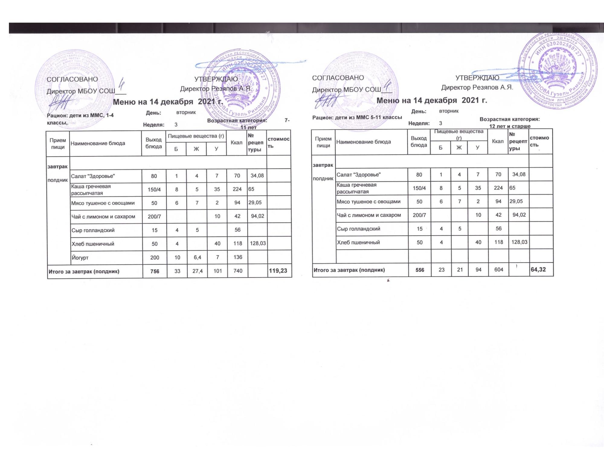 Стоимость школьного питания