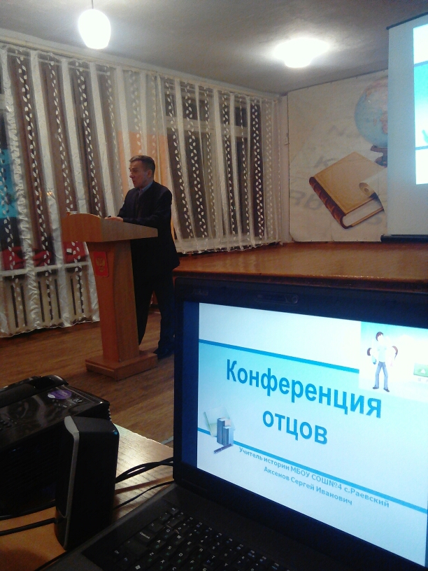В 2017 году в МБОУ СОШ №4 с.Раевский был создан Совет отцов. Основной целью Совета отцов является укрепление связи семьи и школы в деле воспитания, обучения и профилактики негативных проявлений среди учащихся. В рамках деятельности Совета отцов 12 ноября в МБОУ СОШ №4 с.Раевский прошла II Конференция отцов. На конференции приняли участие более 50 отцов учащихся 1-11 классов.