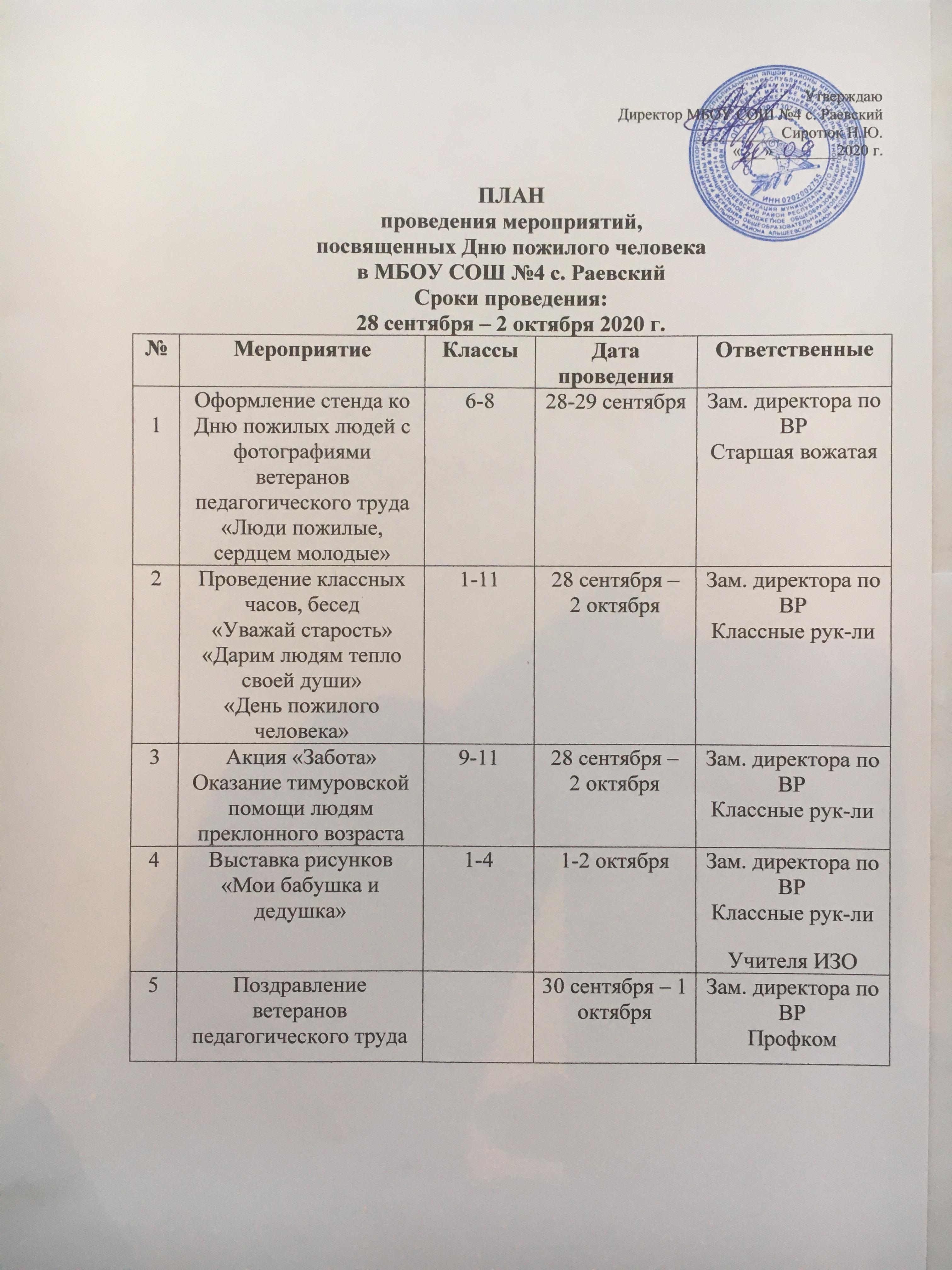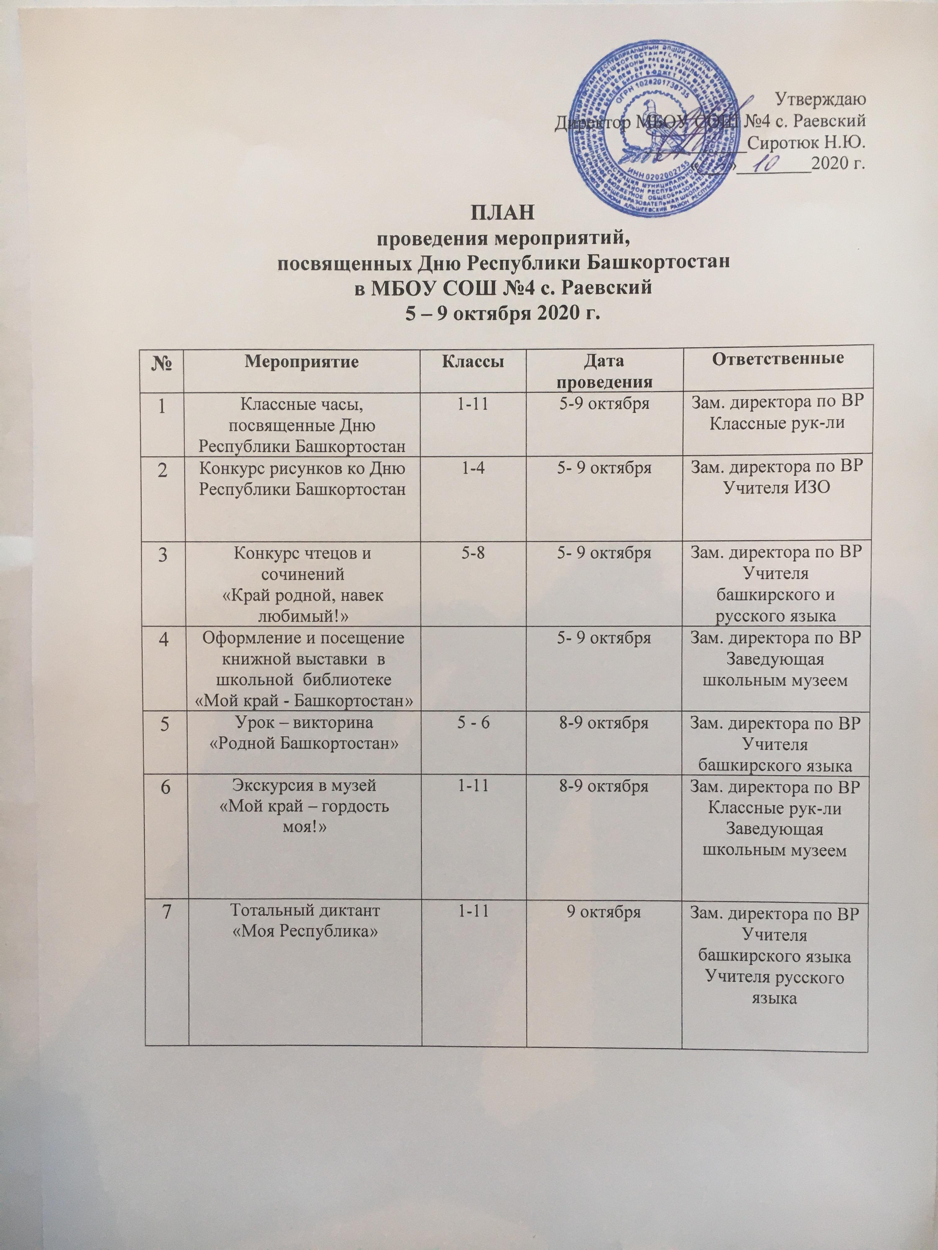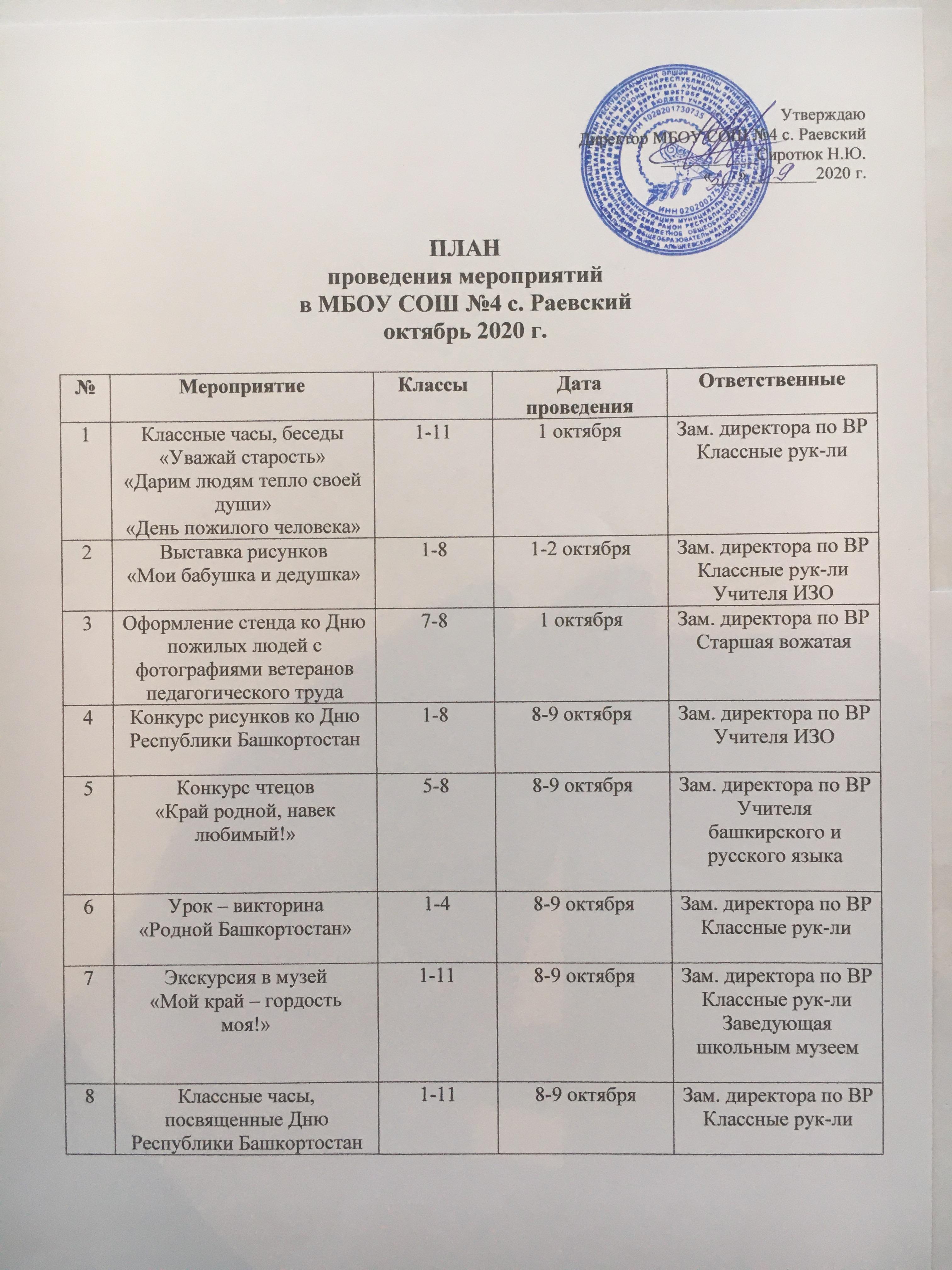 Выставлены планы мероприятий на октябрь