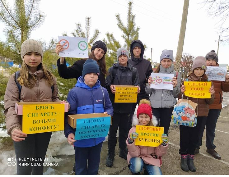 Обучающиеся МБОУ СОШ №4 с.Раевский 2 апреля 2021г. провели акцию "Брось сигарету, возьми конфету"